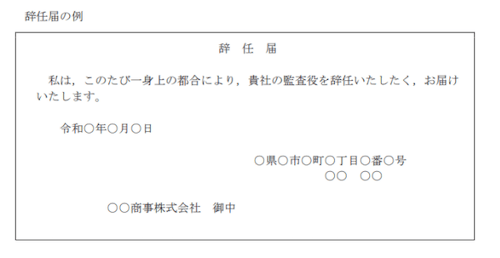 監査役の選任は定時株主総会において決議されますが、辞任時は辞任届を会社に提出すれば辞任できます。