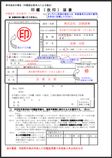 次に印鑑届書の例を見てみましょう。登記申請をしただけで安心してしまって、印鑑届を忘れてしまう場合もあるかもしれません。