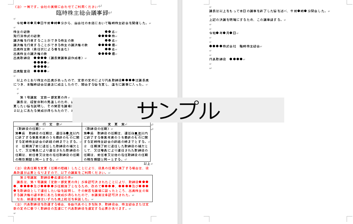 役員任期変更の株主総会議事録テンプレートを無料でダウンロードできます