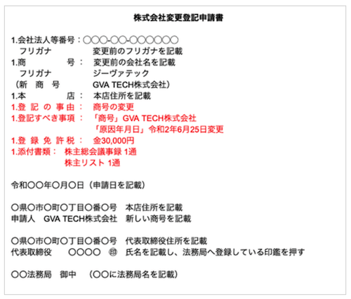- 会社変更登記申請書(本記事でテンプレートとして紹介している書類です)