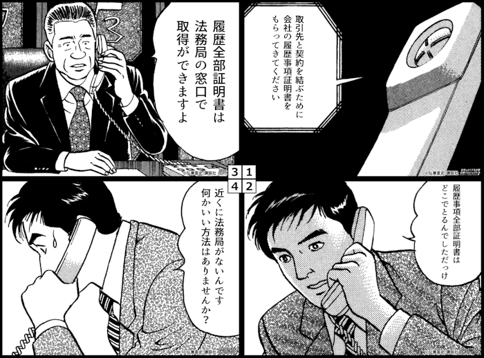 最新の会社の法人登記を確認するためには、登記簿謄本(履歴事項証明書)を取得するには法務局に行かなければいけない、と思われている方は多いかもしれません。