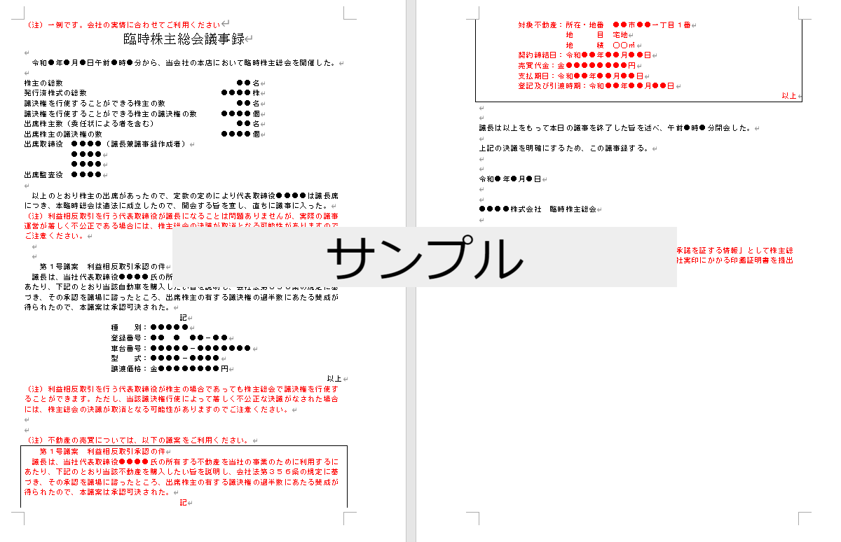 このような方のために、今すぐ使える利益相反取引承認の取締役会議事録・株主総会議事録のテンプレートを用意しました。