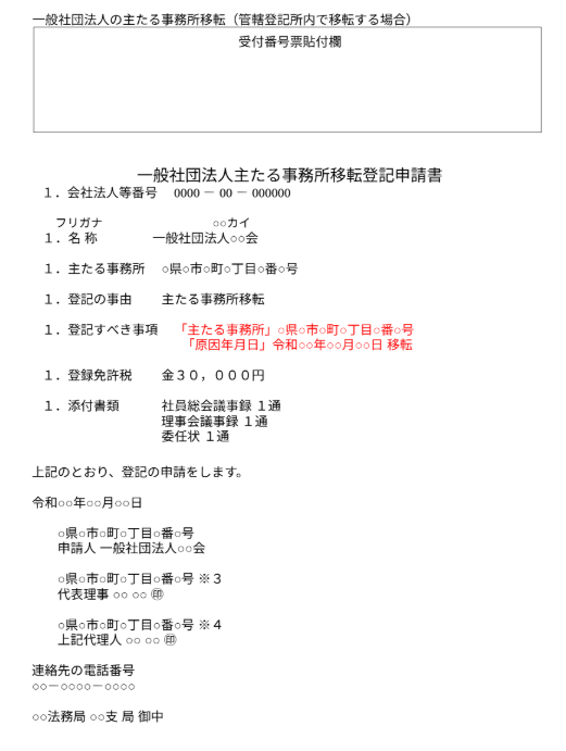 一般社団法人の主たる事務所を移転した場合、法務局への登記申請が必要です。しかし、「申請書の書き方が分からない」「記入例が見つからない」といった悩みを抱えている方も多いのではないでしょうか。