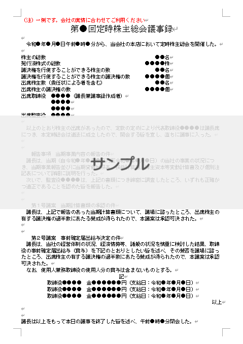 - 事前確定届出給与の株主総会議事録テンプレートを無料でダウンロードできます