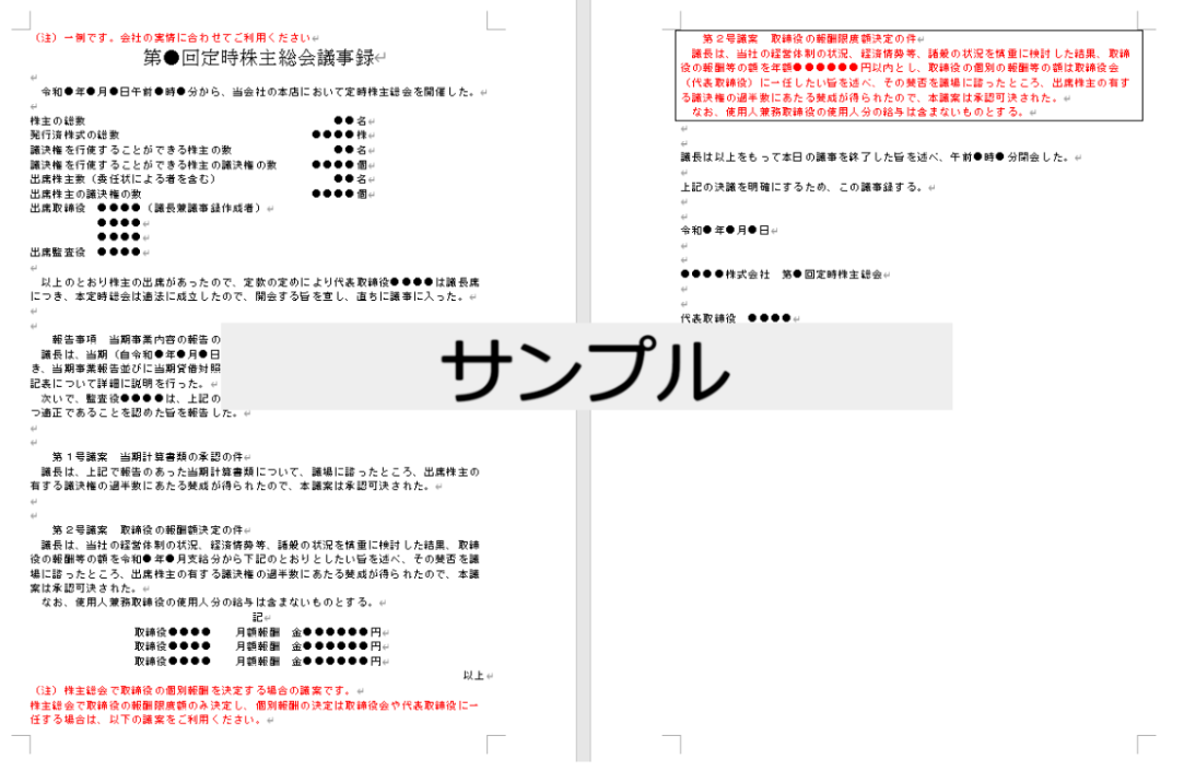 【無料】役員報酬変更の株主総会議事録のテンプレートを今すぐダウンロードできます