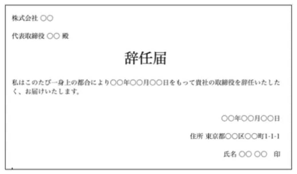 - 役員(取締役)の辞任届のひな形(テンプレート)