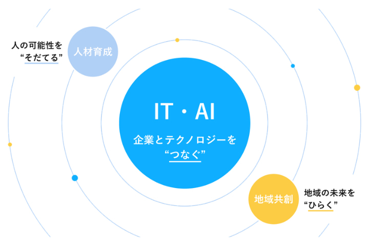 図:「企業のIT・AI導入支援で得た知見を、教育や地域に展開し、社会全体のデジタル実装を後押しする」私たちlanitechはそんな